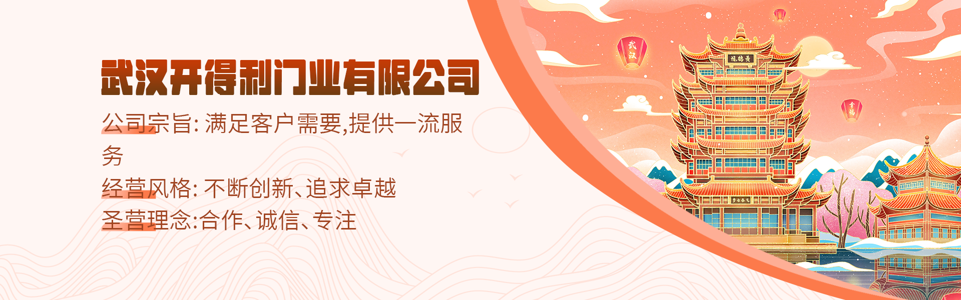 武漢開得利門業(yè)有限公司是全國知名的門業(yè)公司。本公司成立于1994年,專業(yè)致力于智能防淹門、隧道防護門、電動折疊門、地鐵隧道區(qū)間抗風壓防火門、各種電動鋼塑窗、工業(yè)電動提升門、及各種異型門、特種門、超大型門的設計、制作和安裝。